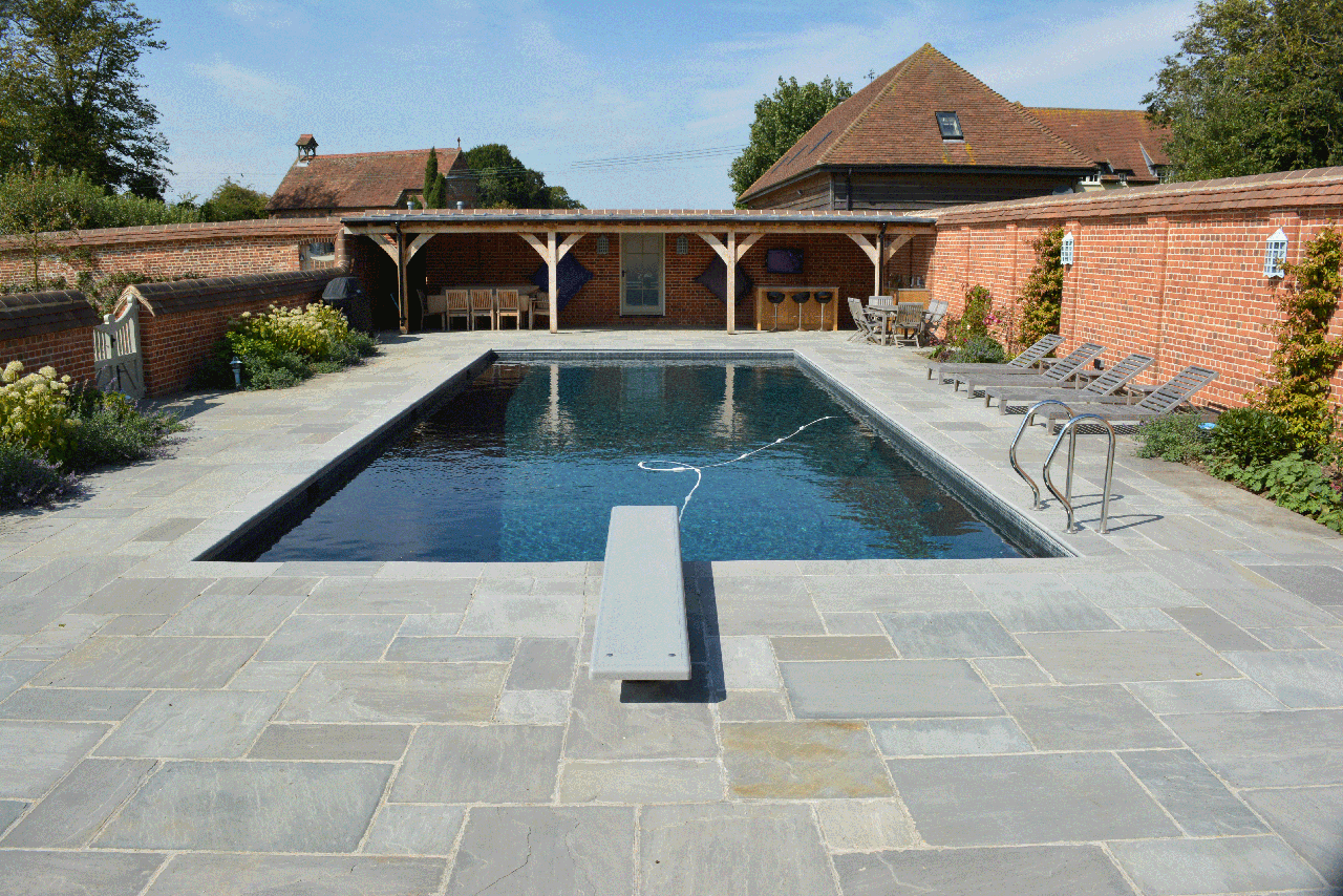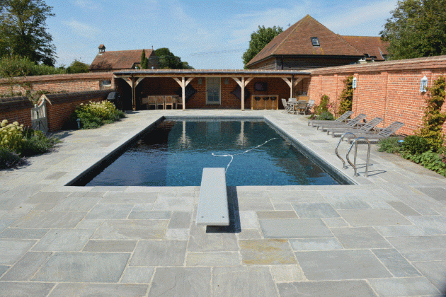 Georgian Antiqued Sandstone Pool Coping and Paving